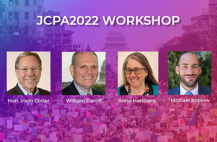 Moderator: William Daroff, Conference of Presidents. Speakers: Irwin Cotler, Raoul Wallenberg Centre for Human Rights; Anne Herzberg, NGO Monitor; Michael Koplow, Israel Policy Forum.